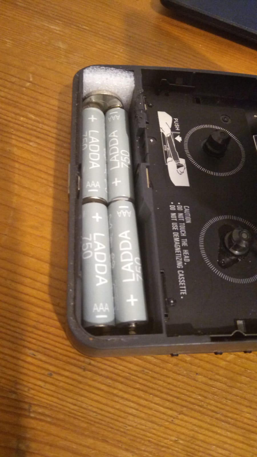 Have tried to reproduce this famous idea and in theory this works. In reality however  most AAA batteries are a little to big in diameter so they squeeze the wall plastics apart and you can no longer close the player properly.