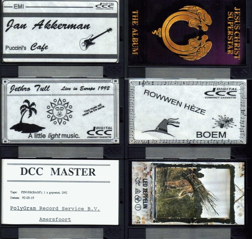 Sometimes i have luck to be able to buy a number of DCC cassettes that are unique (i guess). One of them is not yet known (nor mentioned) in the All DCC cassette collection, while others are demos/tests/hobby projects of Philips employees back in the days and therefore fun to know about their existence (e.g. Rowen Heze on prerecorded DCC). Alle the cassettes have auxiliary text info (title, album, artist, etc.. but no lyrics). As this might be interesting/existing cassettes, i wanted to share them with all of you as well.