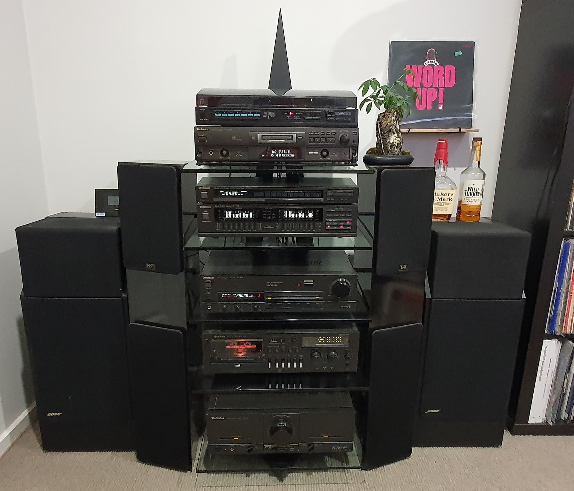 Oh - and here’s my main rig just for sharing Currently switched out the Linear tracking Kenwood TT for a Pro-ject Carbon Esprit with Ortofon Blue. Still trying to find a black Tecchnics SL-1600 MkII to complete the setup