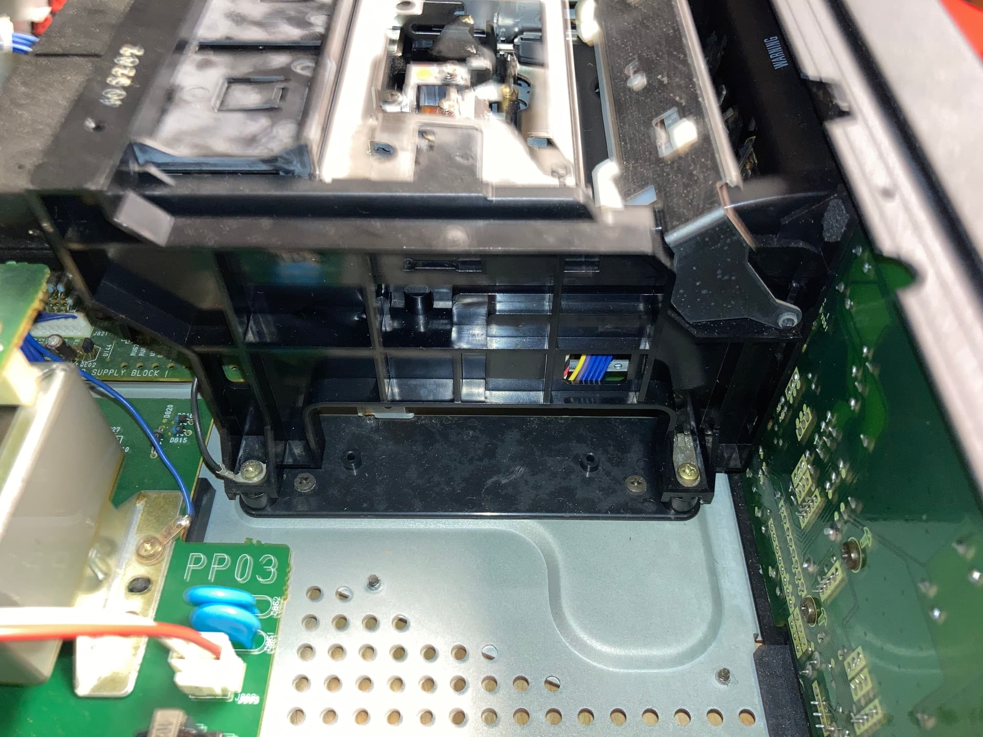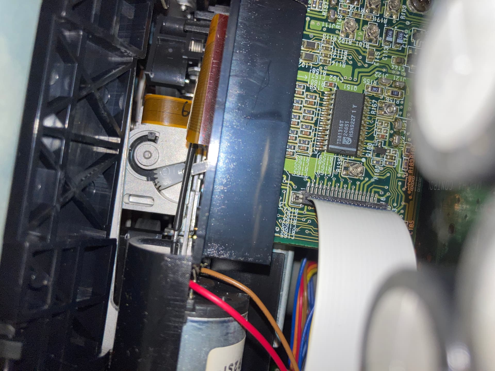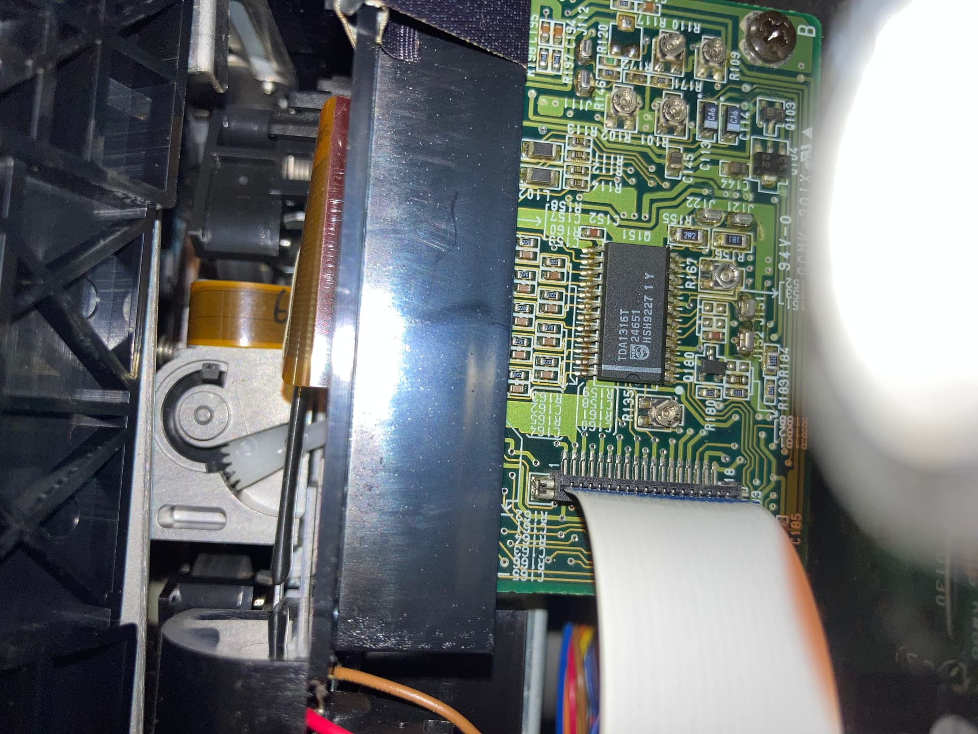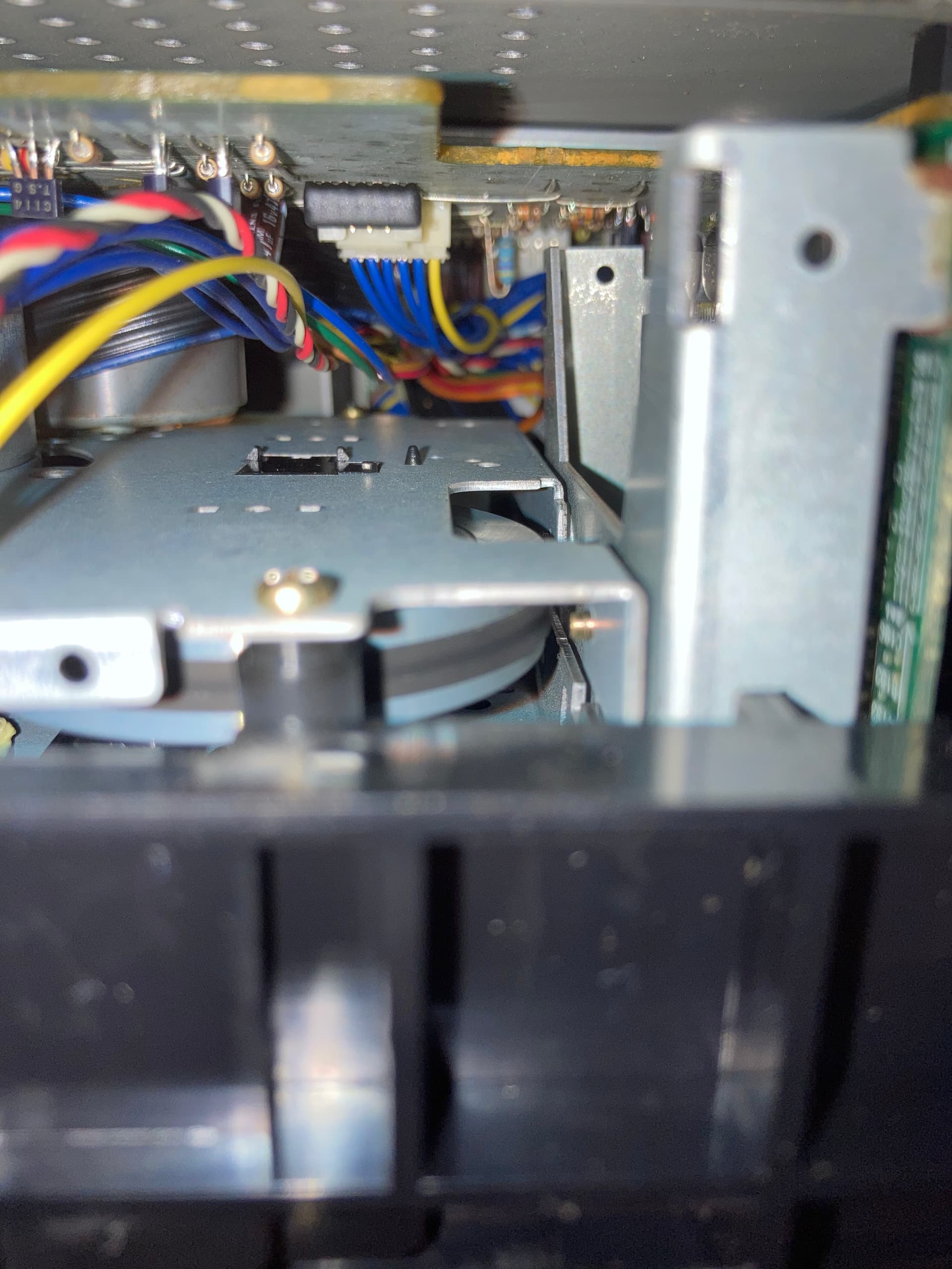 Ok I managed to get a photo from under the tray. The read write board doesn’t look like it has any damage from caps but we will have to see what the other side looks like…I also noticed the metal bar for the tray it looks kinda crooked? I think I may found out what’s wrong with the tray not coming out.