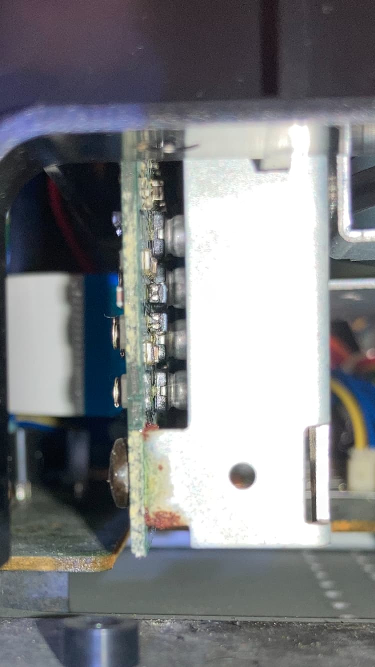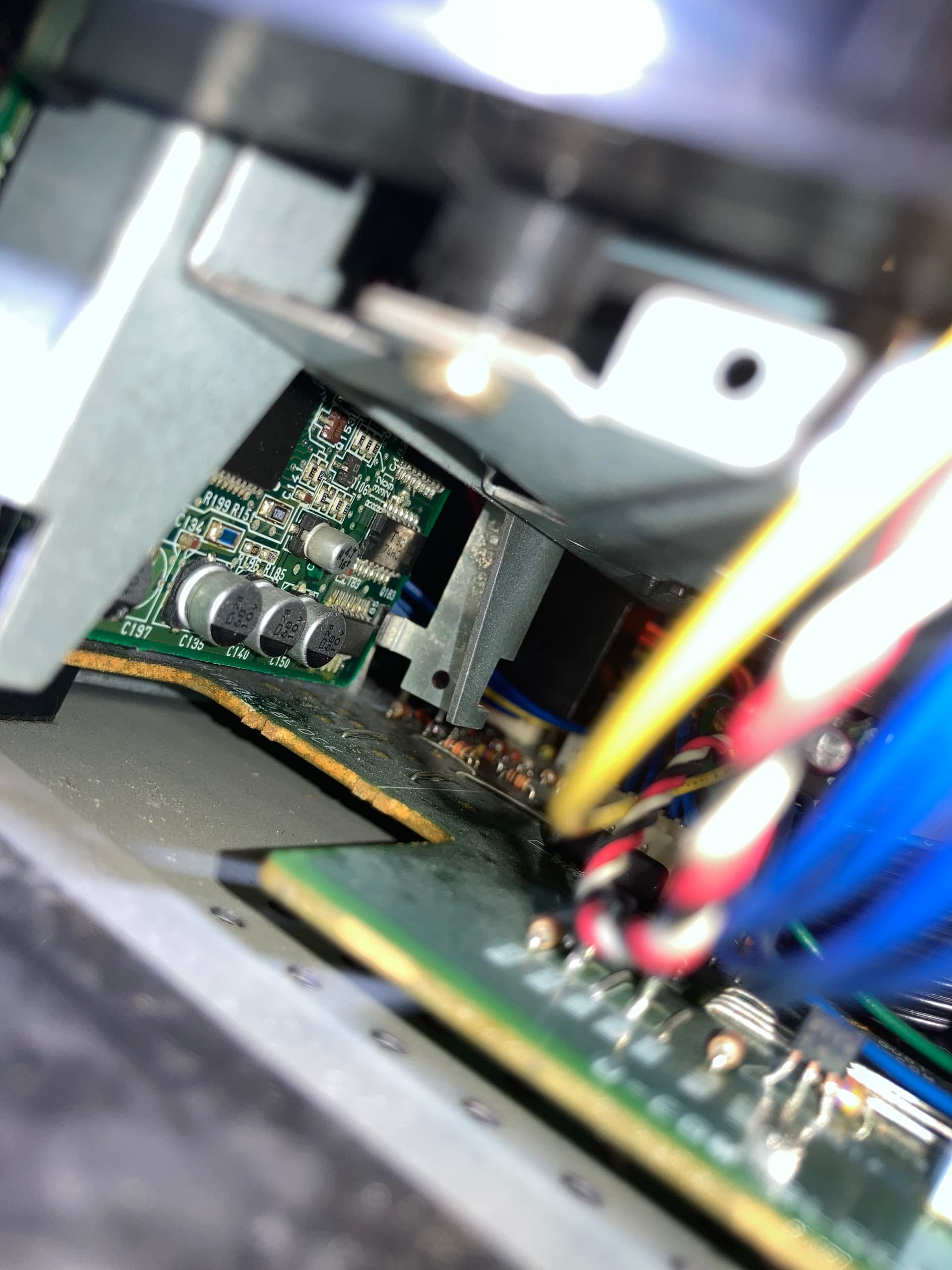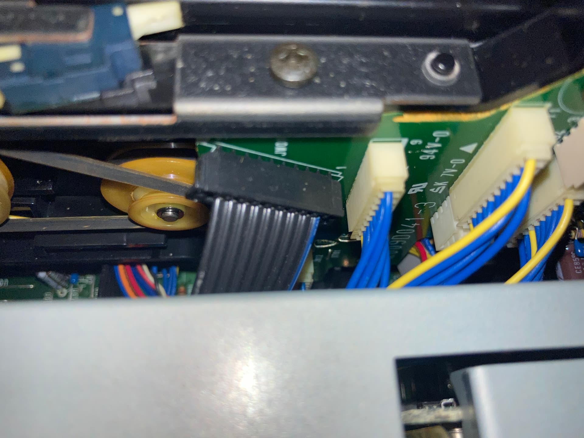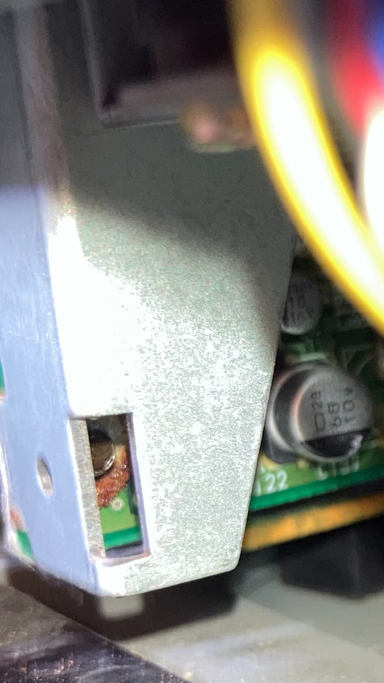 Ok I managed to get a photo from under the tray. The read write board doesn’t look like it has any damage from caps but we will have to see what the other side looks like…I also noticed the metal bar for the tray it looks kinda crooked? I think I may found out what’s wrong with the tray not coming out.
