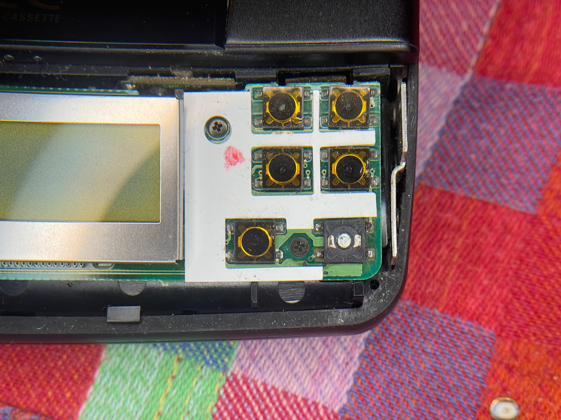 On both machines, the PLAY button does not work reliably. On the DP7, pressing PLAY in OFF mode will cause a “shuffling” sound to be heard as if the machine is trying to start but doesn’t succeed. If it’s already ON, the PLAY button will either not work at all or induce the SKIP back one song function. Here’s a video of what’s going on (turn up to volume to hear the “shuffle”):