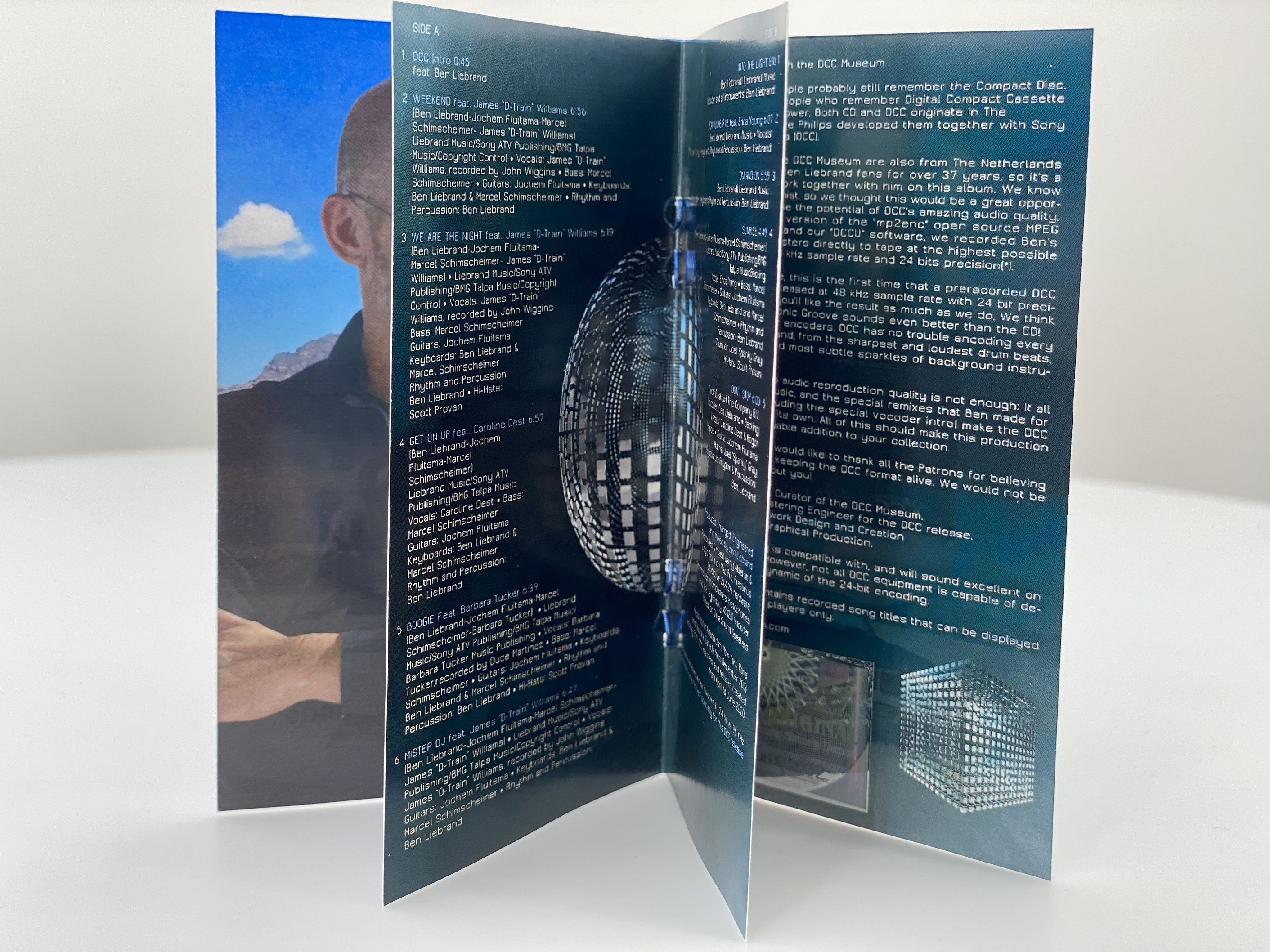Some of us at the DCC Museum are also from the Netherlands and we’ve been Ben Liebrand fans for over 37 years, so it’s a great honor to work together with him on this album. We know Ben is a perfectionist, so we thought this would be a great opportunity to showcase the potential of DCC’s amazing audio quality. Using a modified version of the “mp2enc” open source MPEG Layer 1 encoder and our “DCCU” software, we recorded Ben’s studio-quality masters directly to tape at the highest possible quality for DCC: 48 kHz sample rate and 24 bits precision(*).