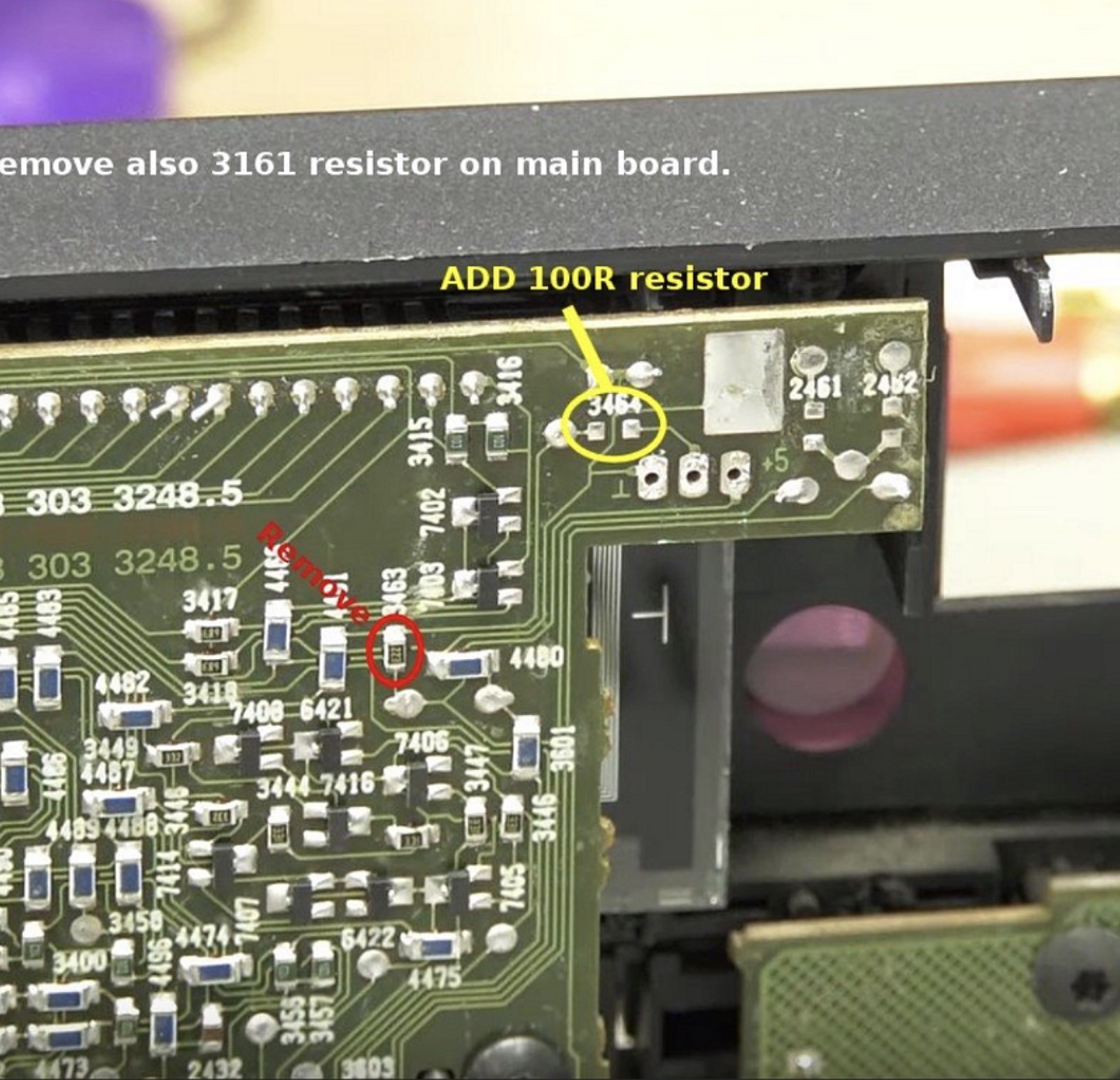 You also need to add a 100R to 3464 and remove Resistor 3463 from the front board and 3161 from the main board to successfully connect the IR Sensor.